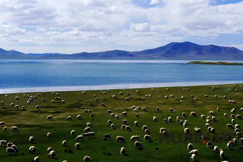 世界的淡水湖--錯那湖畔的成群牛羊